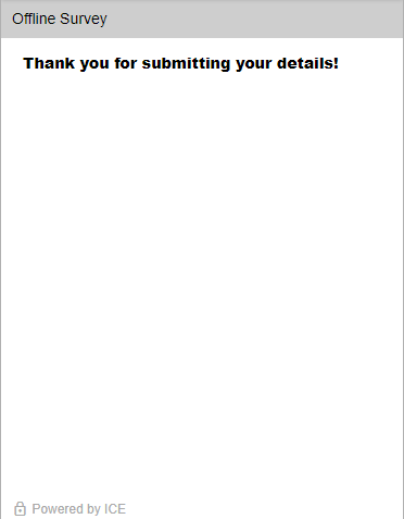 - Offline Survey- When a visitor fills the details for offline survey and submits it, the system will generate a default message. This is as shown below-