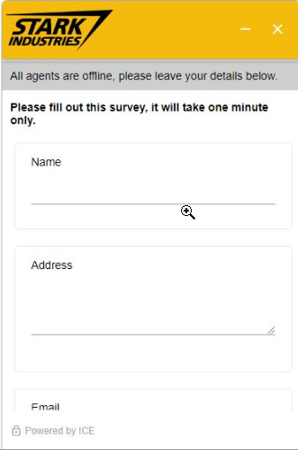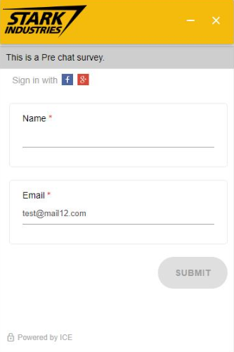 - Pre-Chat Survey- A pre-chat survey with its description in a modern window console will appear in following format-