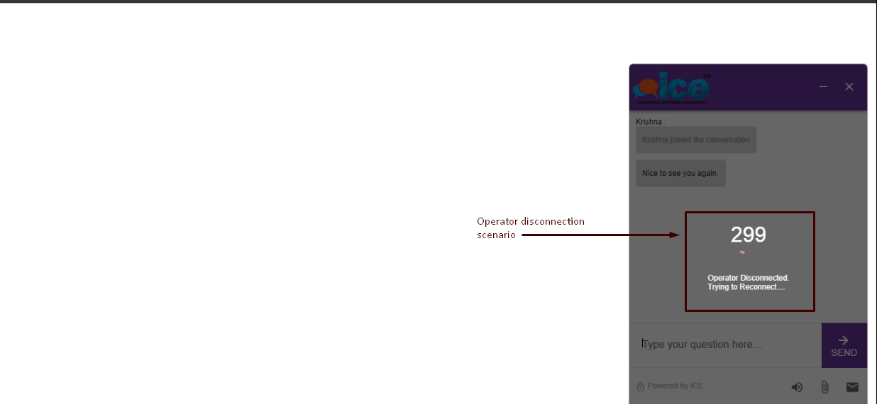 In case if by any reason an operator is disconnected during an ongoing chat, the system tries to reconnect the chat within 300 seconds. This is as shown below-
