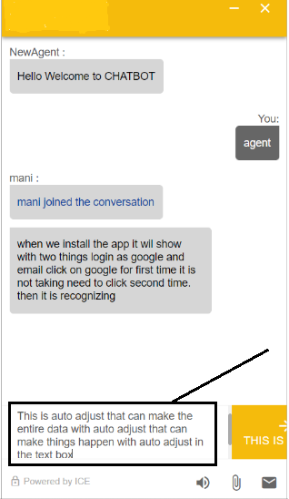 ICE application provides resizable text box for visitor console. In this case, if a visitor enters a lengthy sentence in the text box, the size of the text box expands like the one as shown below-
