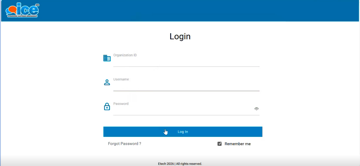 1. Log in to ICE using your username and password.