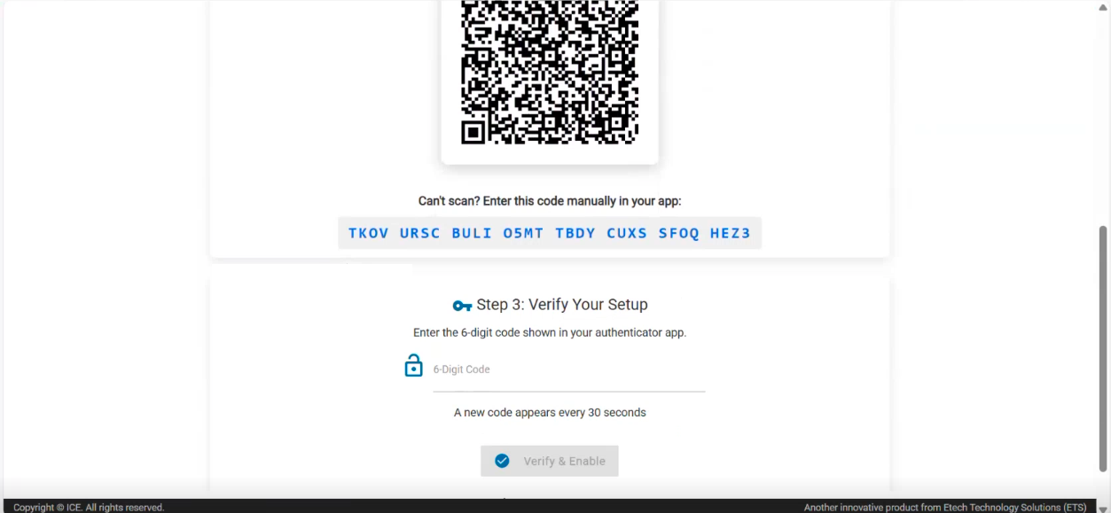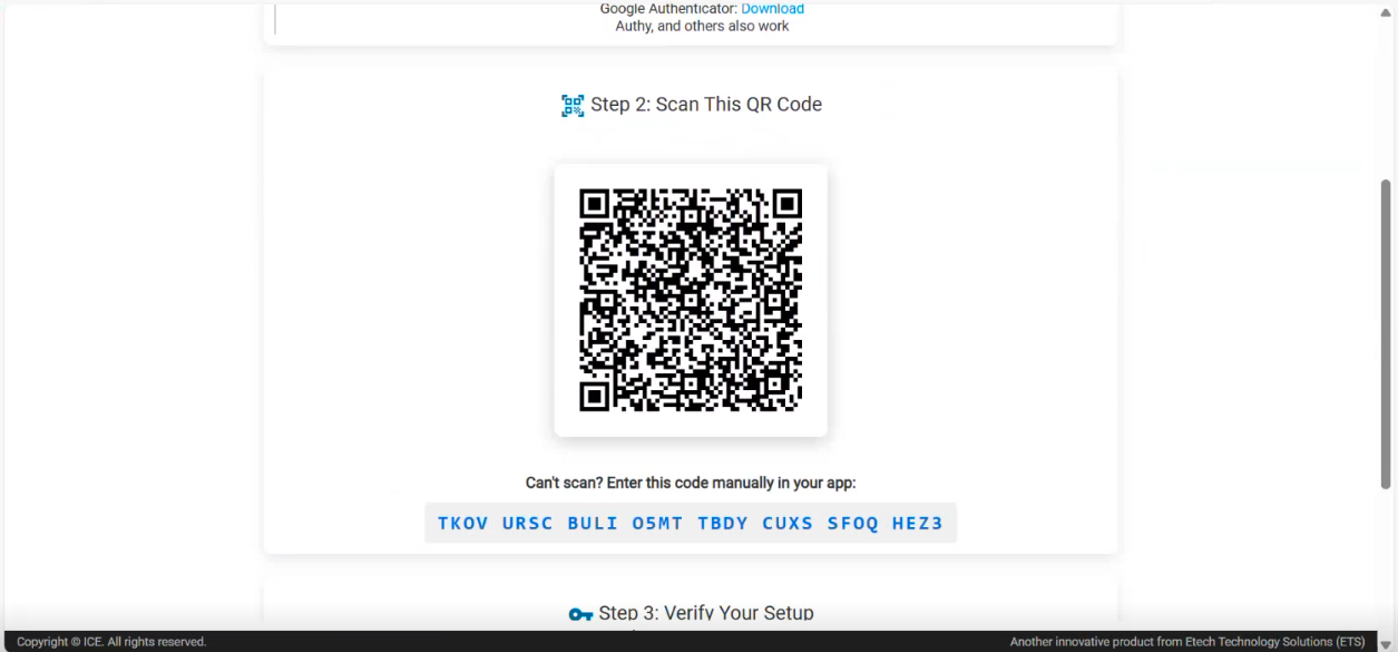 Multi-Factor Authentication (MFA) adds an additional layer of security to ICE by requiring users to verify their identity using a second factor (an authenticator app) in addition to their username and password. This helps protect user accounts from unauthorized access.