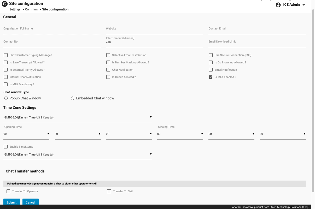 Organization Admins can configure MFA settings from the Site Configuration page using the options below.